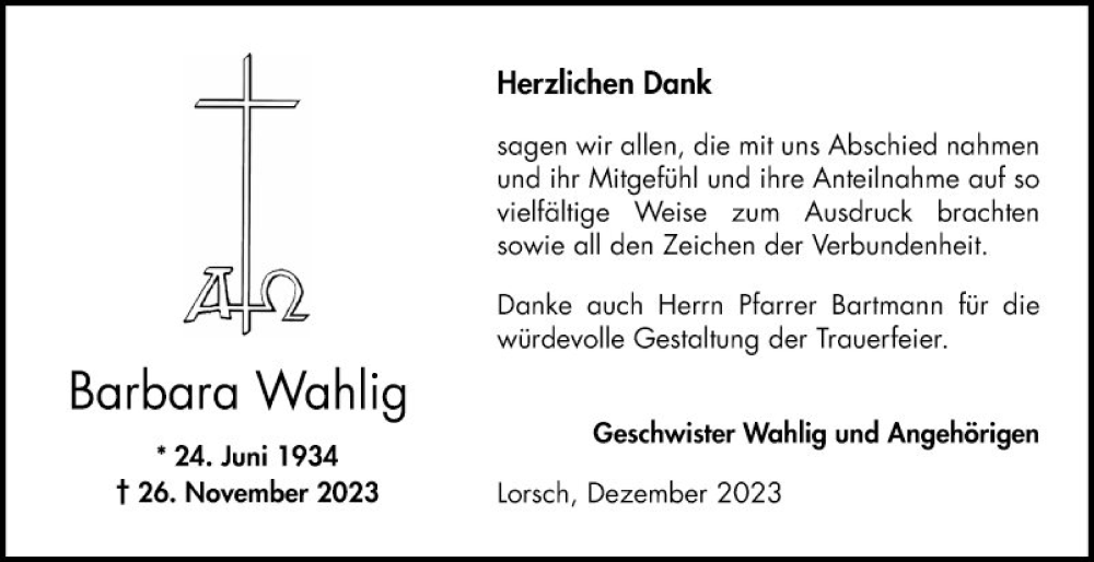Hier finden Sie alle Traueranzeigen aus der Zeitung, die bisher für Barbara Wang erschienen sind. Weitere Traueranzeigen, die in der Zeitung erscheinen, werden hier ebenfalls aufgelistet