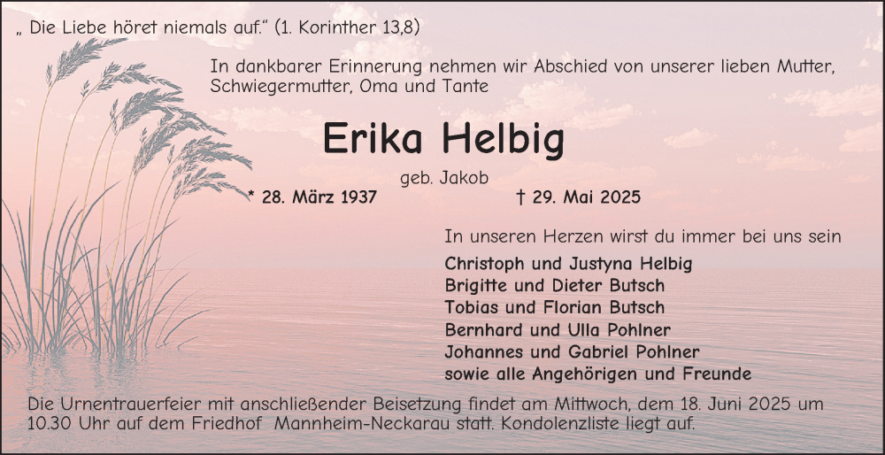 Hier finden Sie alle Traueranzeigen aus der Zeitung, die bisher für Erika Helbig erschienen sind. Weitere Traueranzeigen, die in der Zeitung erscheinen, werden hier ebenfalls aufgelistet