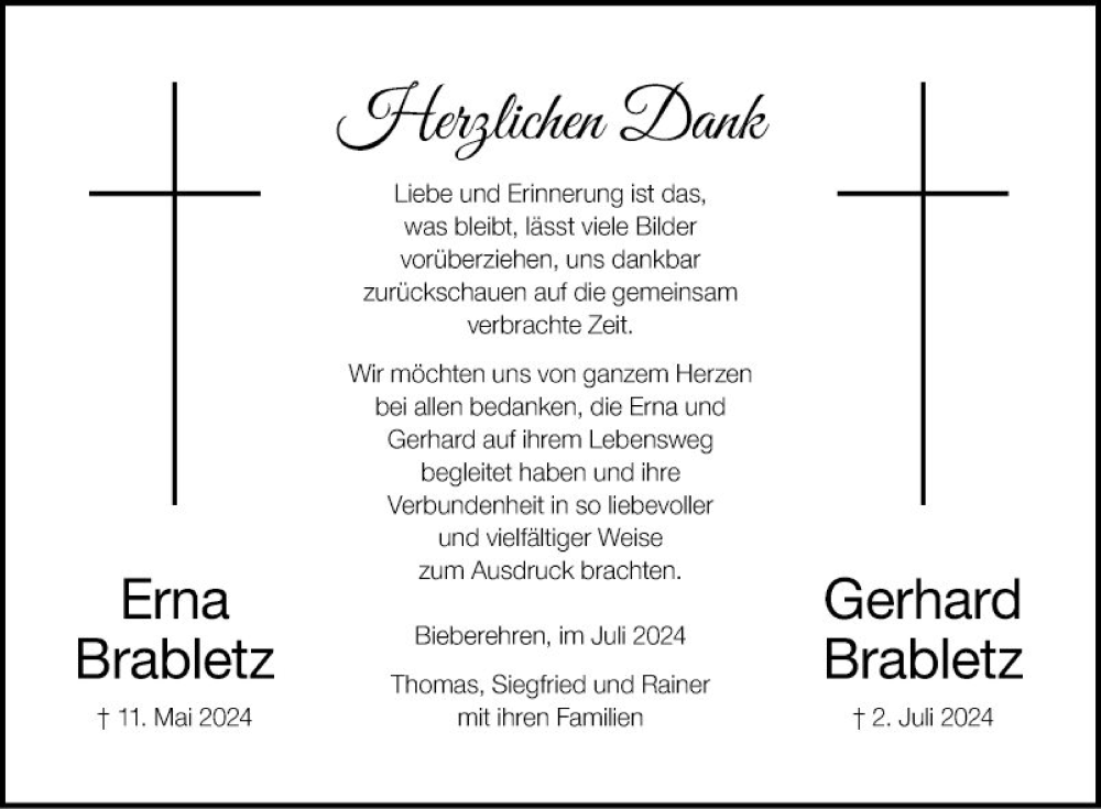 Hier finden Sie alle Traueranzeigen aus der Zeitung, die bisher für Erna Brabletz erschienen sind. Weitere Traueranzeigen, die in der Zeitung erscheinen, werden hier ebenfalls aufgelistet