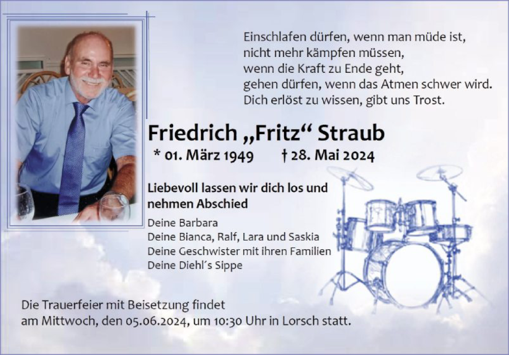Hier finden Sie alle Traueranzeigen aus der Zeitung, die bisher für Friedrich Straub erschienen sind. Weitere Traueranzeigen, die in der Zeitung erscheinen, werden hier ebenfalls aufgelistet