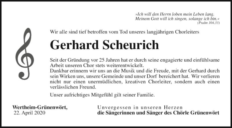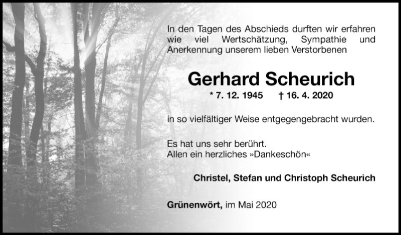 Hier finden Sie alle Traueranzeigen aus der Zeitung, die bisher für Gerhard Scheurich erschienen sind. Weitere Traueranzeigen, die in der Zeitung erscheinen, werden hier ebenfalls aufgelistet