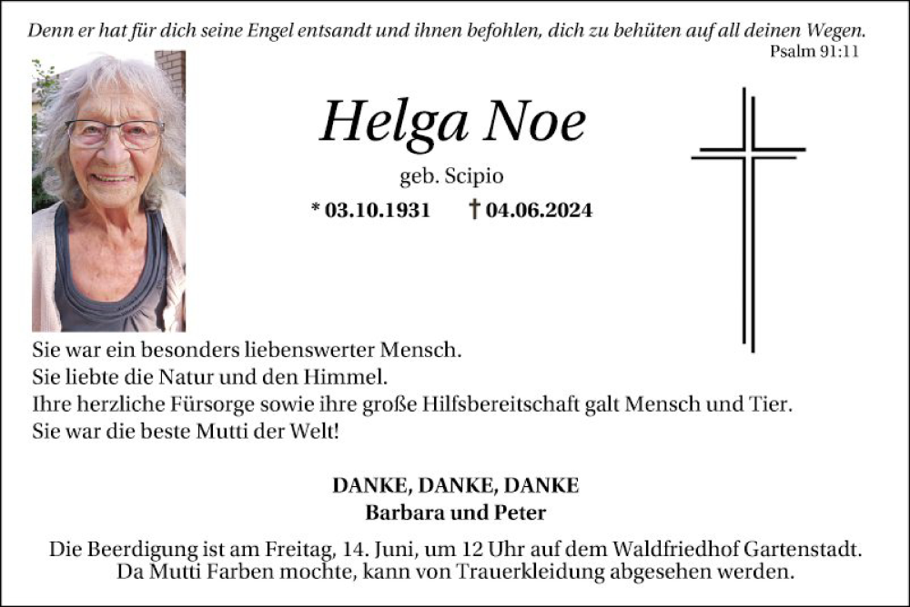 Hier finden Sie alle Traueranzeigen aus der Zeitung, die bisher für Helga Noe erschienen sind. Weitere Traueranzeigen, die in der Zeitung erscheinen, werden hier ebenfalls aufgelistet