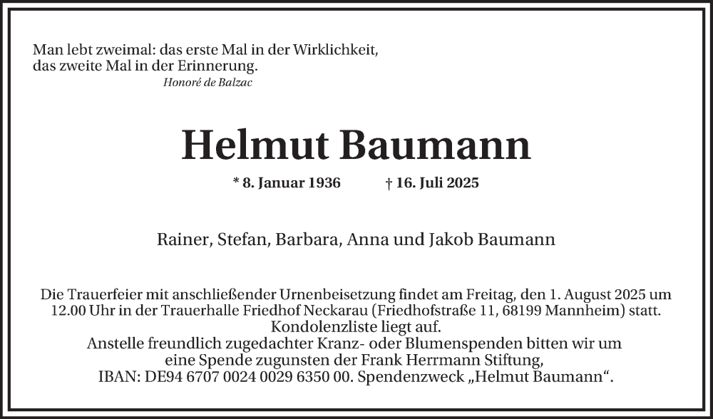 Hier finden Sie alle Traueranzeigen aus der Zeitung, die bisher für Helmut Baumann erschienen sind. Weitere Traueranzeigen, die in der Zeitung erscheinen, werden hier ebenfalls aufgelistet