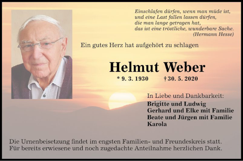 Hier finden Sie alle Traueranzeigen aus der Zeitung, die bisher für Helmut Weber erschienen sind. Weitere Traueranzeigen, die in der Zeitung erscheinen, werden hier ebenfalls aufgelistet