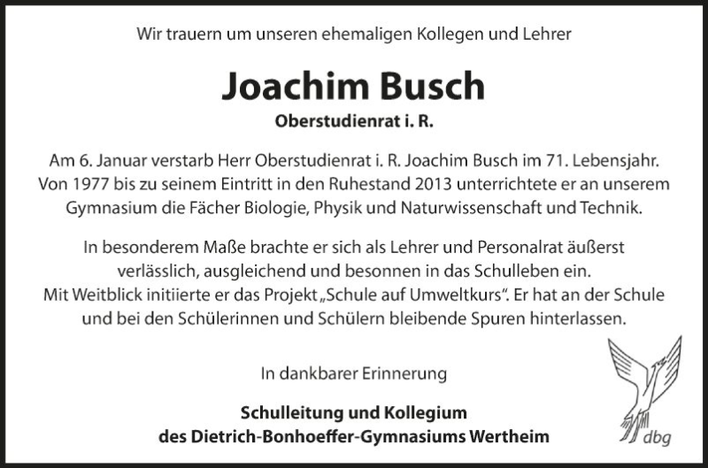 Hier finden Sie alle Traueranzeigen aus der Zeitung, die bisher für Joachim Busch erschienen sind. Weitere Traueranzeigen, die in der Zeitung erscheinen, werden hier ebenfalls aufgelistet