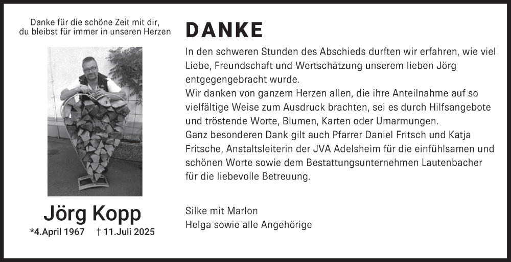 Hier finden Sie alle Traueranzeigen aus der Zeitung, die bisher für Jörg Kopp erschienen sind. Weitere Traueranzeigen, die in der Zeitung erscheinen, werden hier ebenfalls aufgelistet