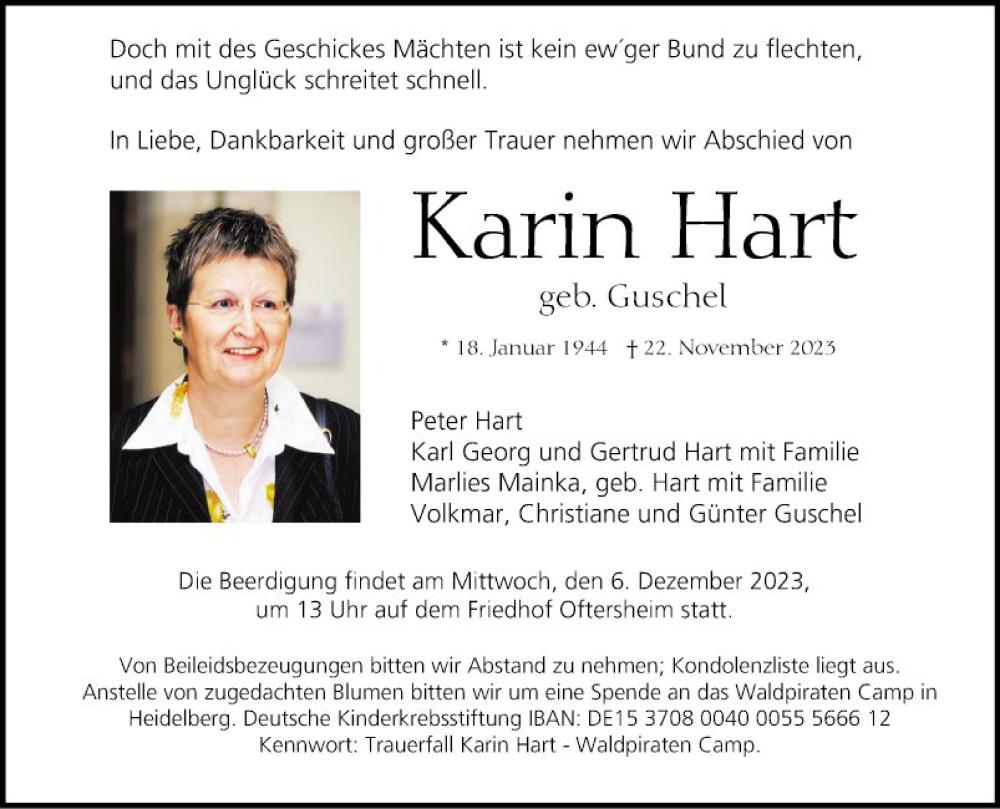 Hier finden Sie alle Traueranzeigen aus der Zeitung, die bisher für Karin Hart erschienen sind. Weitere Traueranzeigen, die in der Zeitung erscheinen, werden hier ebenfalls aufgelistet