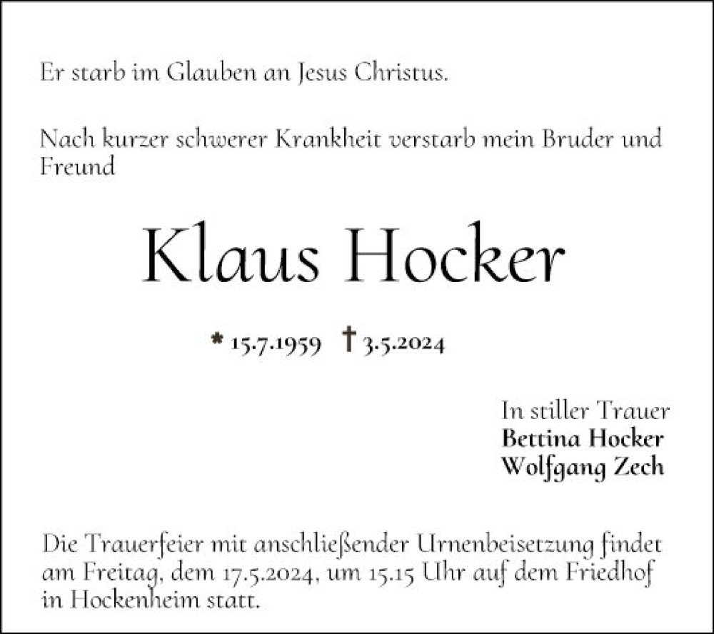 Hier finden Sie alle Traueranzeigen aus der Zeitung, die bisher für Klaus Hocker erschienen sind. Weitere Traueranzeigen, die in der Zeitung erscheinen, werden hier ebenfalls aufgelistet