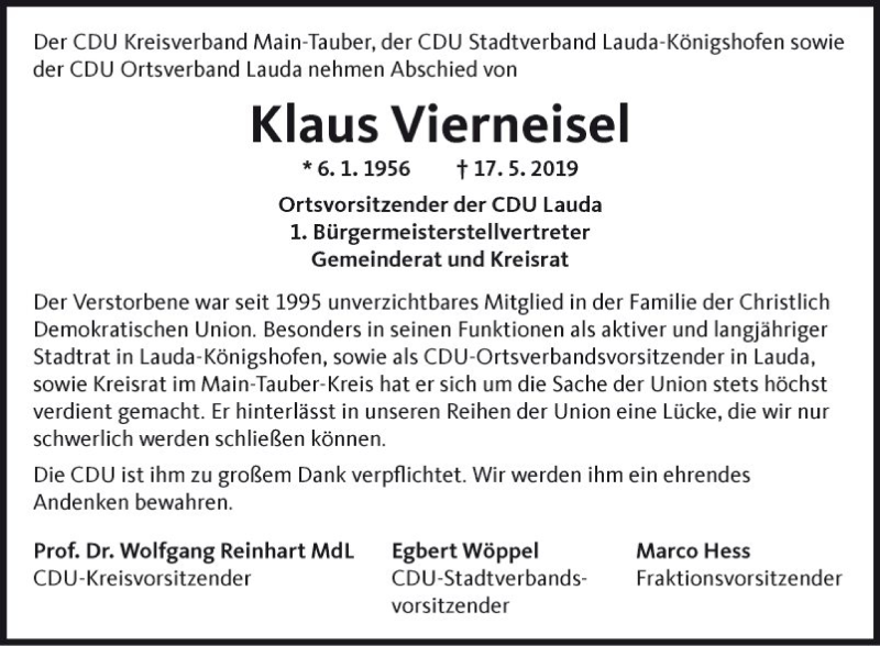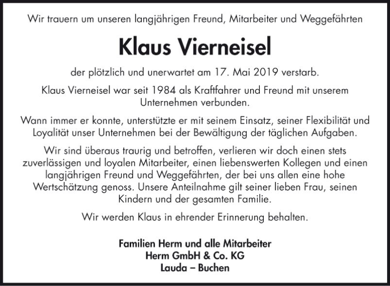 Hier finden Sie alle Traueranzeigen aus der Zeitung, die bisher für Klaus Vierneisel erschienen sind. Weitere Traueranzeigen, die in der Zeitung erscheinen, werden hier ebenfalls aufgelistet