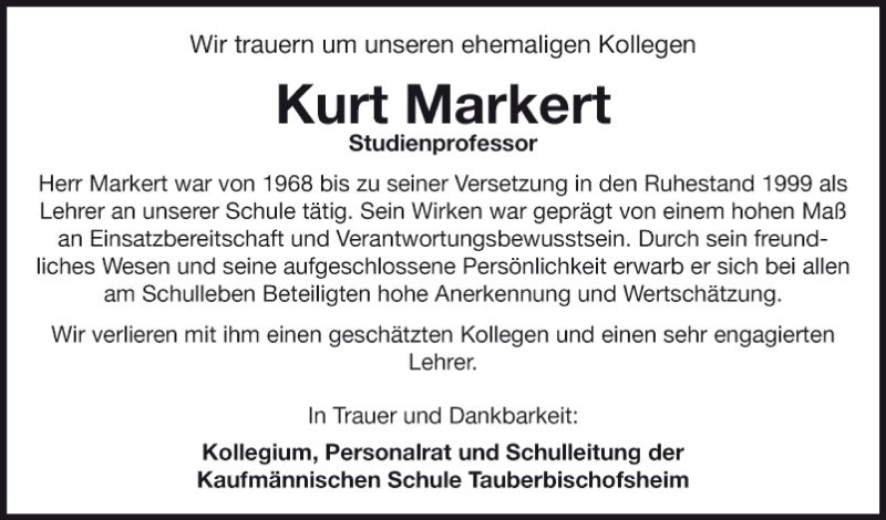 Hier finden Sie alle Traueranzeigen aus der Zeitung, die bisher für Kurt Markert erschienen sind. Weitere Traueranzeigen, die in der Zeitung erscheinen, werden hier ebenfalls aufgelistet