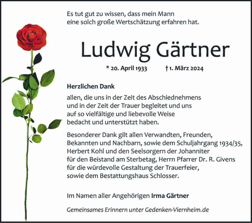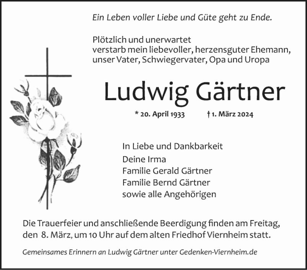 Hier finden Sie alle Traueranzeigen aus der Zeitung, die bisher für Ludwig Gärtner erschienen sind. Weitere Traueranzeigen, die in der Zeitung erscheinen, werden hier ebenfalls aufgelistet