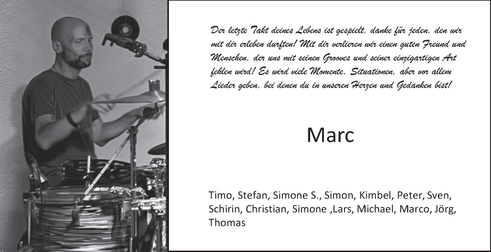 Hier finden Sie alle Traueranzeigen aus der Zeitung, die bisher für Marc Dörr erschienen sind. Weitere Traueranzeigen, die in der Zeitung erscheinen, werden hier ebenfalls aufgelistet