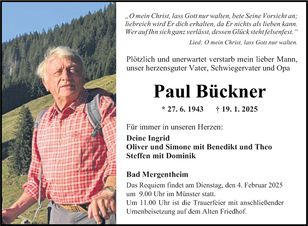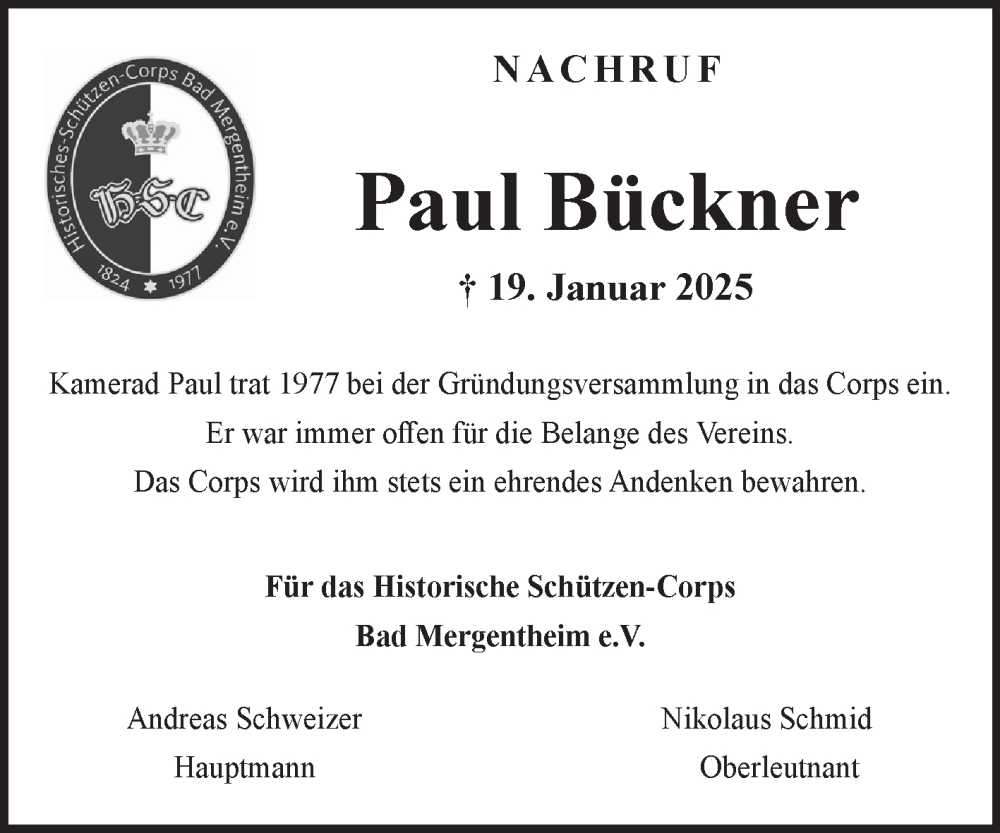 Hier finden Sie alle Traueranzeigen aus der Zeitung, die bisher für Paul Bückner erschienen sind. Weitere Traueranzeigen, die in der Zeitung erscheinen, werden hier ebenfalls aufgelistet