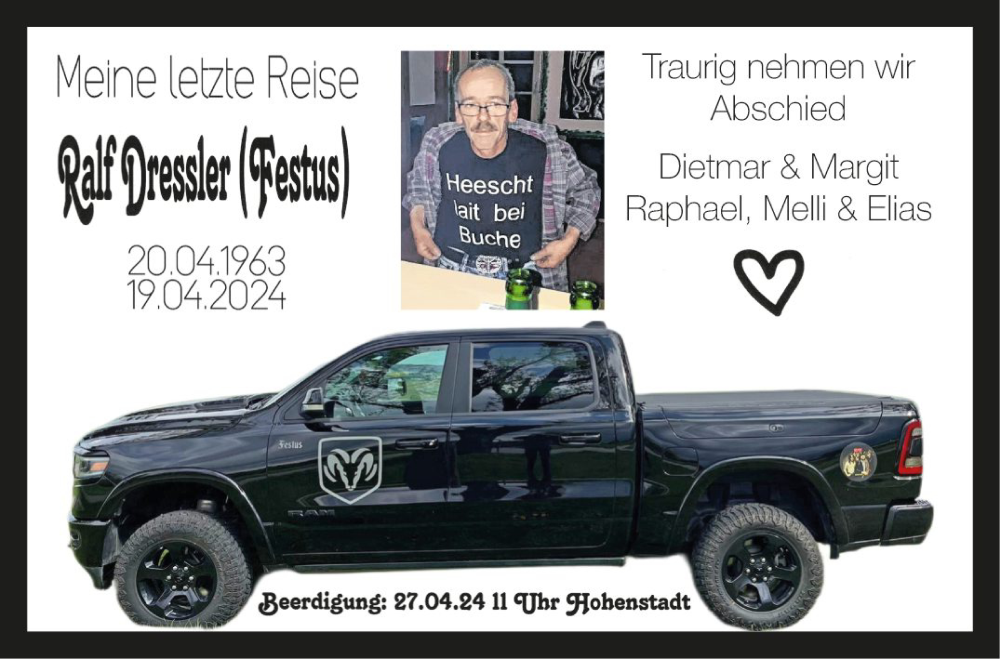 Hier finden Sie alle Traueranzeigen aus der Zeitung, die bisher für Ralf Dressler erschienen sind. Weitere Traueranzeigen, die in der Zeitung erscheinen, werden hier ebenfalls aufgelistet