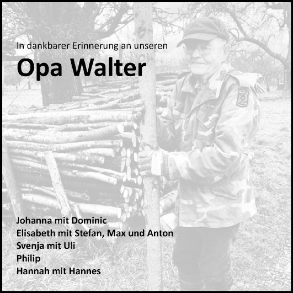 Hier finden Sie alle Traueranzeigen aus der Zeitung, die bisher für Walter erschienen sind. Weitere Traueranzeigen, die in der Zeitung erscheinen, werden hier ebenfalls aufgelistet