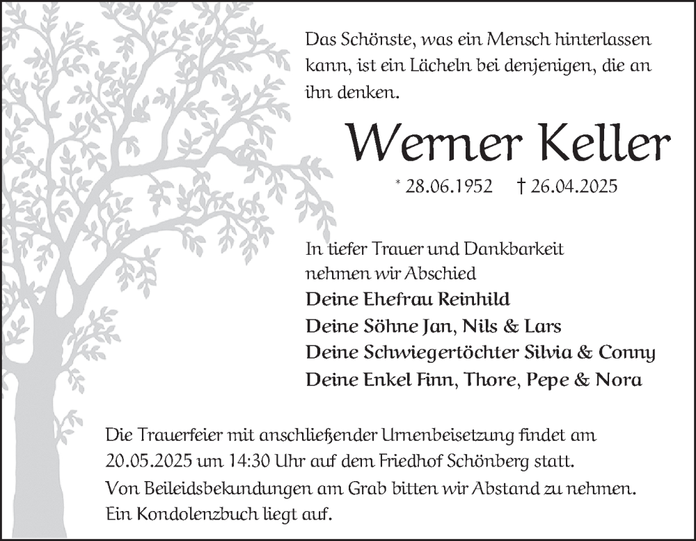 Hier finden Sie alle Traueranzeigen aus der Zeitung, die bisher für Werner Keller erschienen sind. Weitere Traueranzeigen, die in der Zeitung erscheinen, werden hier ebenfalls aufgelistet